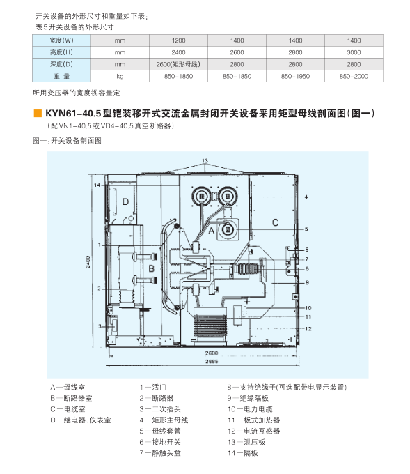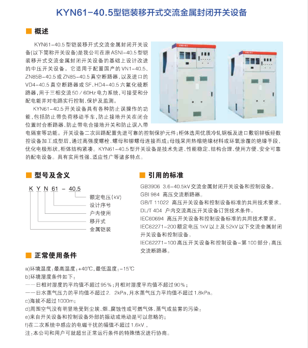 产品名称:KYN61-40.5型铠装移开式交流金属封闭开关设备