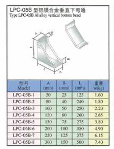 产品名称:LPC-05B型铝镁合金垂直下弯通