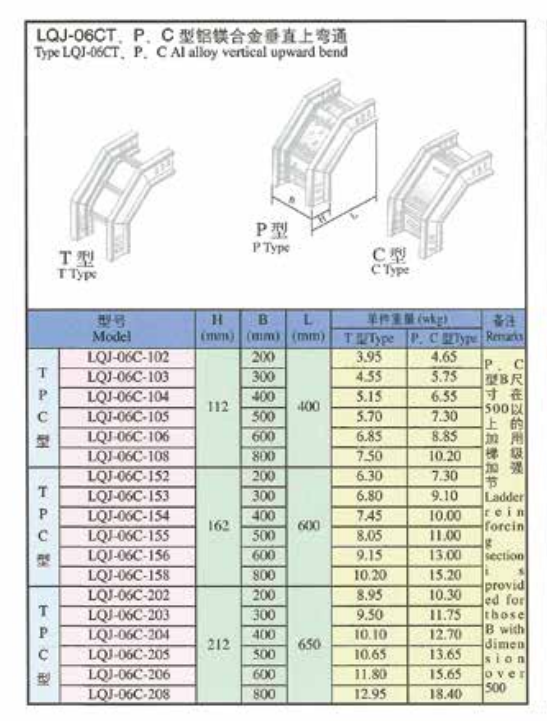 产品名称:LQJ-06CT、P、C型铝镁合金垂直上弯通